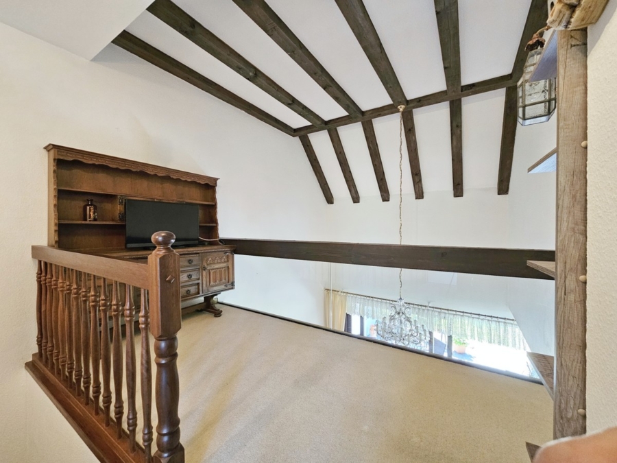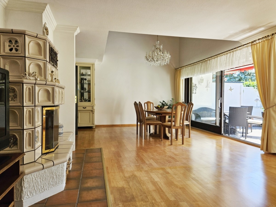 Ein architektonisches Highlight stellt die elegante Galerie dar, die sich über dem Essbereich erstreckt und dem Haus ein offenes, großzügiges Raumgefühl verleiht. Für Fahrzeuge steht eine breite, direkt am Haus befindliche Garage zur Verfügung.