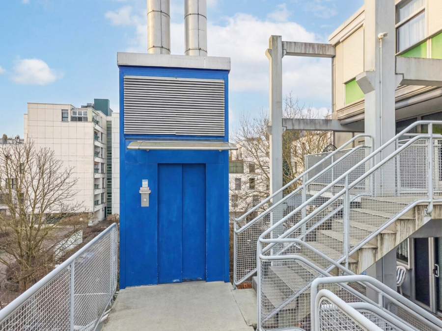 Ein besonderer Komfort wird durch den praktischen Außenaufzug innerhalb der Wohnanlage geboten. Für Familien steht zudem ein gemeinschaftlicher Spielplatz zur Verfügung. Trotz der städtischen Lage ist die Anlage von begrünten Freiflächen umgeben und vermittelt ein angenehm aufgelockertes Wohnumfeld. Hervorzuheben ist außerdem ein großer Gemeinschaftsraum im EG, der von den Bewohnern für private Feierlichkeiten gebucht werden kann. Ergänzt wird das Angebot durch großzügige Trockenräume sowie einen Fahrradkeller.